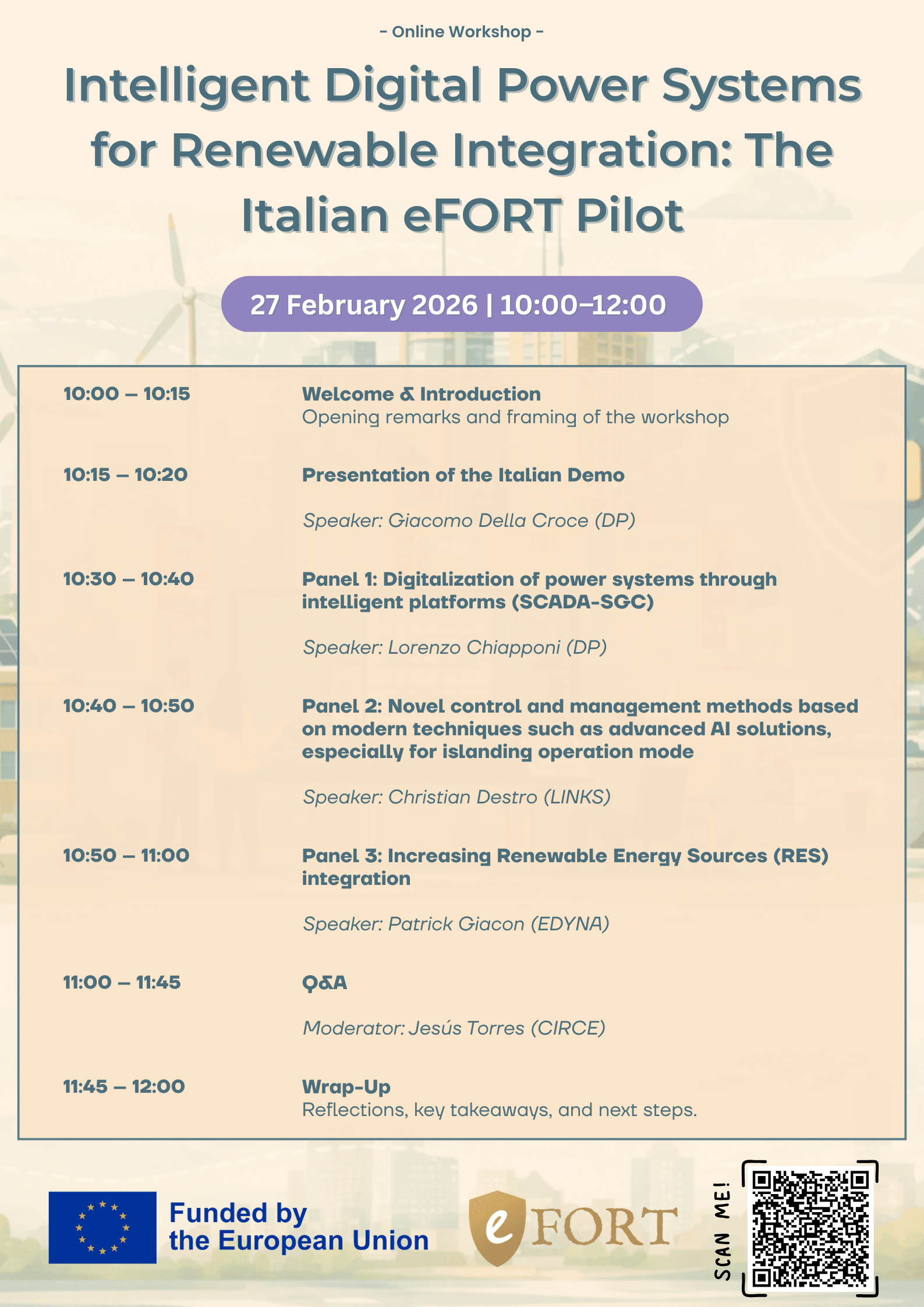 Join this interactive online workshop showcasing the Italian pilot of the eFORT project, where advanced digital platforms, intelligent control methods, and innovative strategies are being developed and demonstrated to support the next generation of resilient and flexible energy systems.