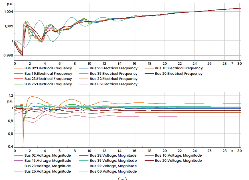 Results of scenario 2 RMS diagram (frequency and voltage).